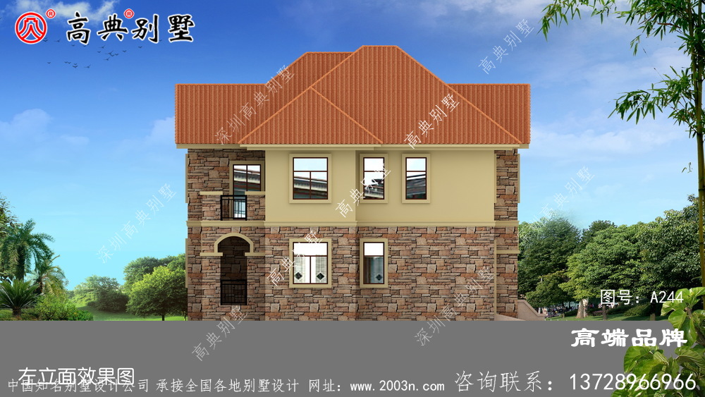 现在宅基地非常难审批,别浪费你家宅基地。在老家建这栋别墅,不仅有面子,还可用来做生意,简直不要太赞了。这款是欧式别墅,别墅配色温馨、靓丽,细节精致,别墅洋溢着青春的气息。 A244号别墅设计图纸及效果图介绍: