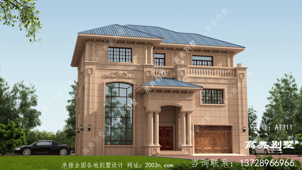 高档大方三层欧式石材别墅房屋设计图