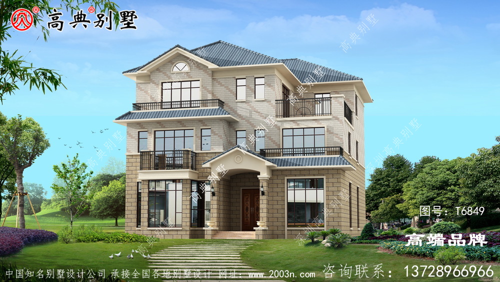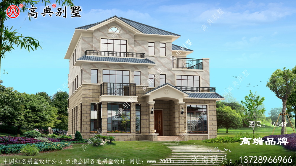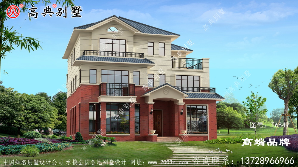 这座欧式风格设计的三层别墅,是一种来源于欧州的设计风格。